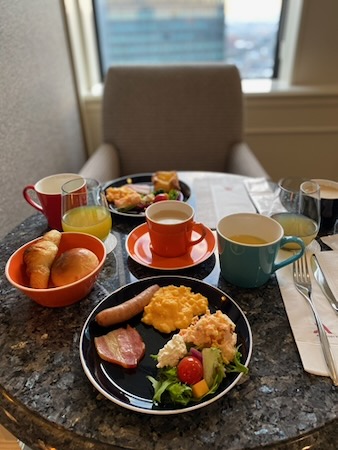 「名古屋マリオットアソシアホテル」のラウンジで朝食