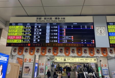 ‥が、改札に行ってみると新幹線に遅れが出ているとのこと!