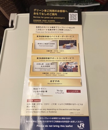 今回、帰りの新幹線をグリーン車にしてたので(EXで予約したら普通車との差額がなぜか400円くらいしか変わらなかったのです)、グリーン車専用のモバイルサービスを使ってみることに。