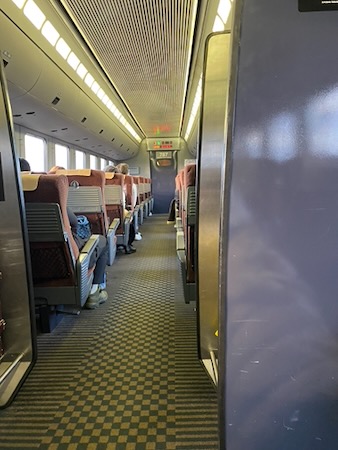 新幹線かもめの車内は、こんな感じの木を使ったナチュラルな雰囲気。